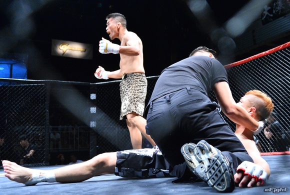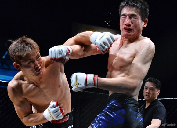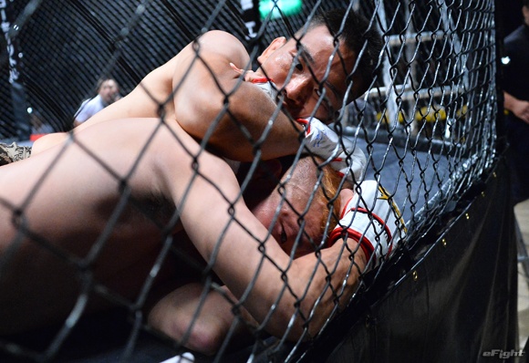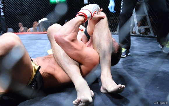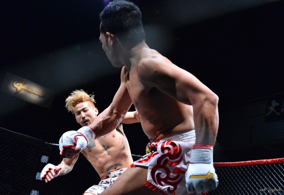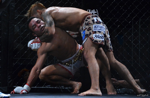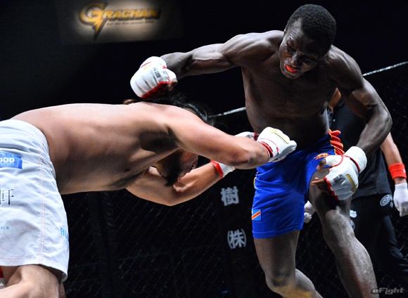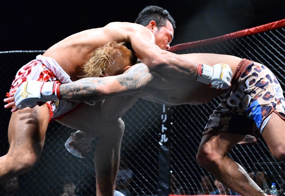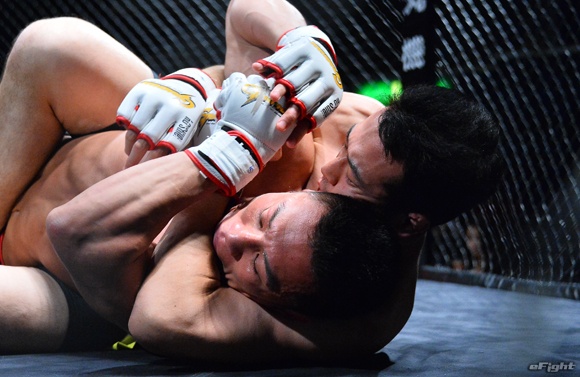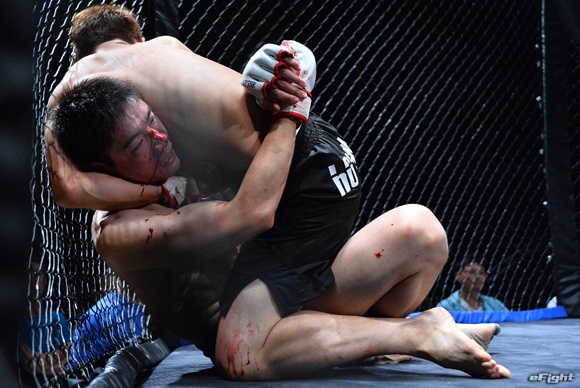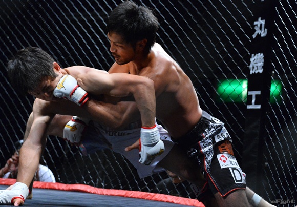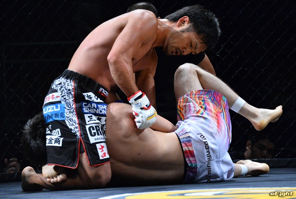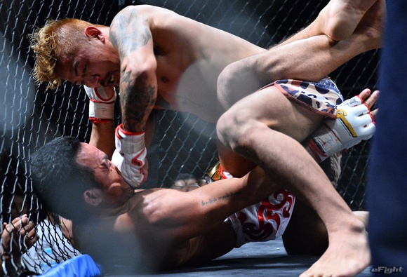 ハッカムノーイ(下)を抑え込みながら殴り続ける大澤(上)