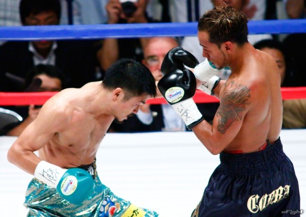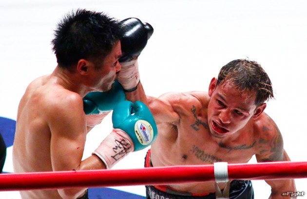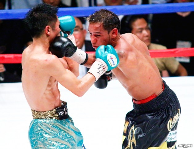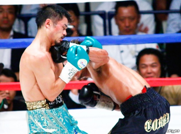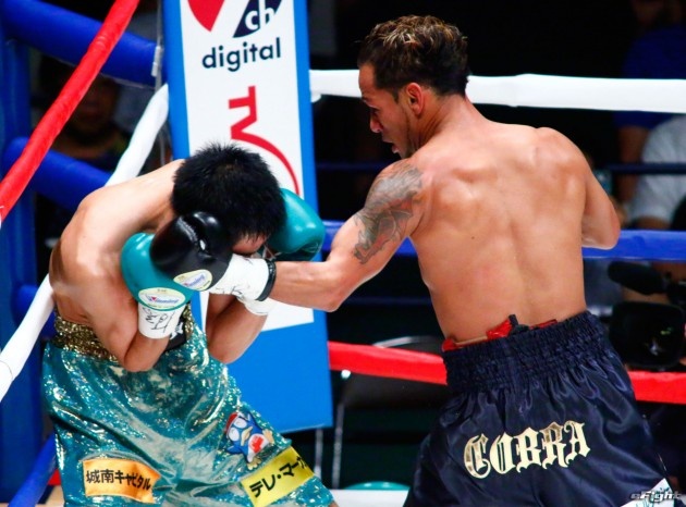 顔面を腫らしながら闘う河野(右)だったが、王座陥落となった