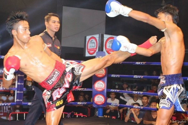 初出場の興行を鮮烈TKO勝利で飾った石井一成(左)