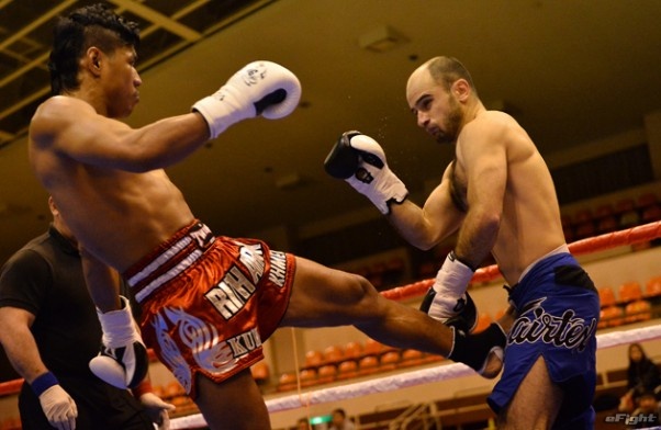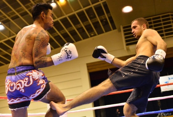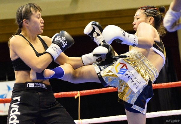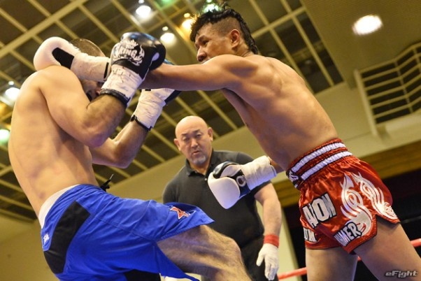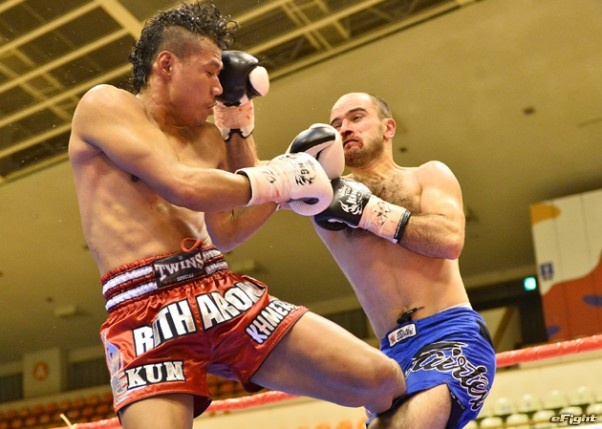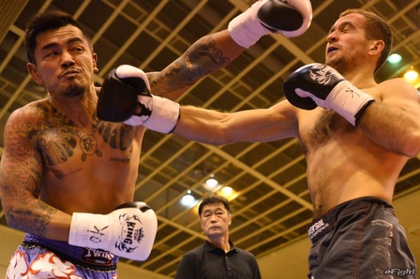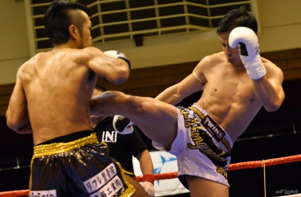 ダウンを奪ったコンゲンチャイ(左)が新日本ランカーを下した