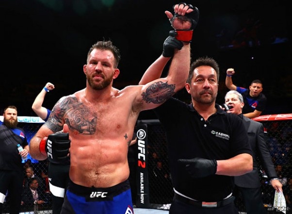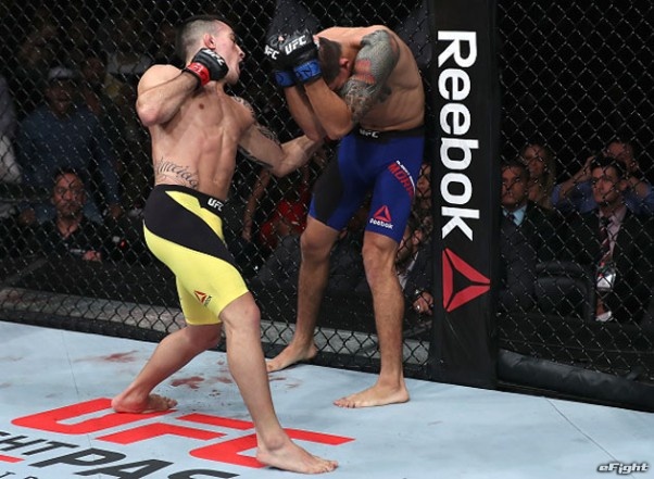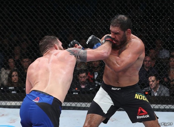 精彩を欠くホジェリオ(右)に右フックを見舞うベイダー(左)