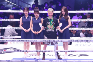 野杁(左)がフランスの超新星スリマニ(右)をKOし、NDC-66kg世界タイトルを奪取