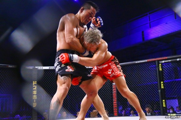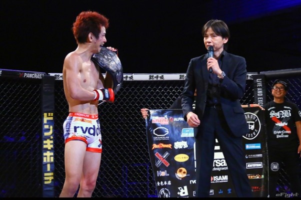 試合後、砂辺(左)は酒井パンクラス代表(右)を呼び込み、他団体参戦の後押しを受けた