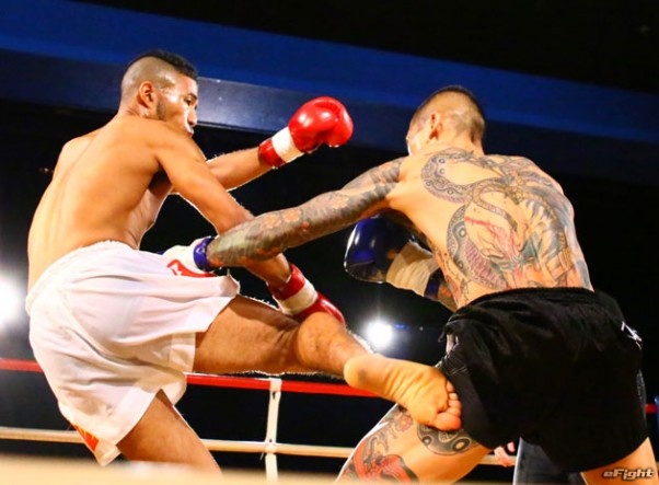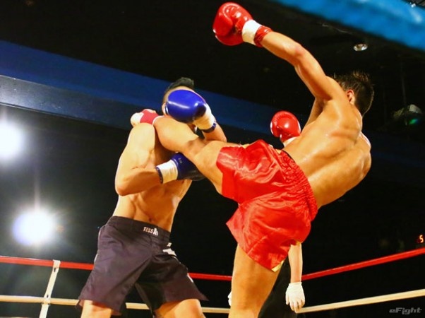 武来安(左)がライトヘビー級王座への挑戦権を獲得した