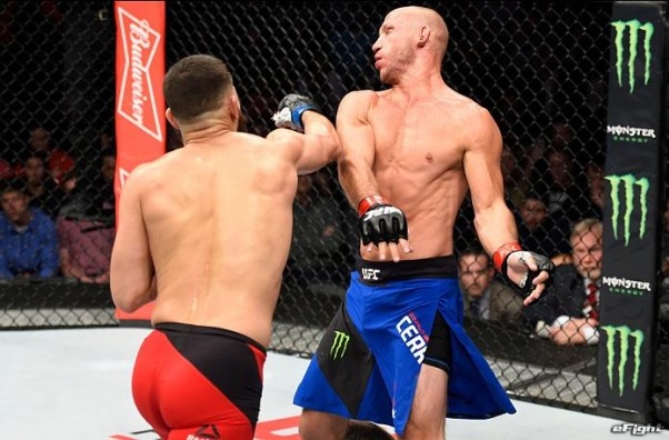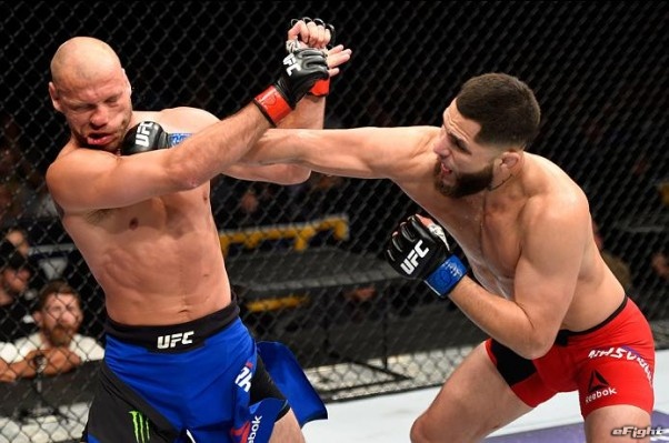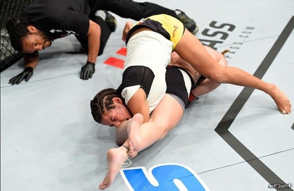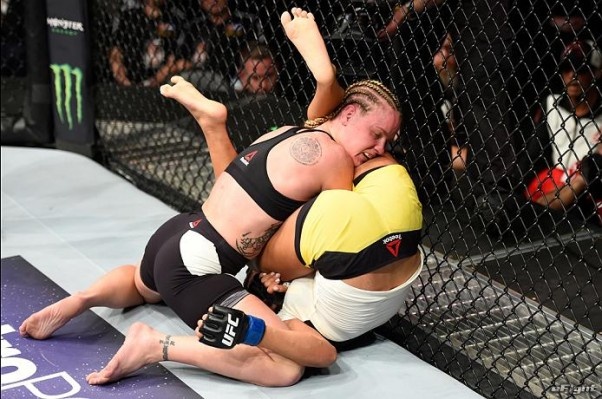試合後、現王者アマンダ・ヌネス(右)に宣戦布告するシェフチェンコ(左)