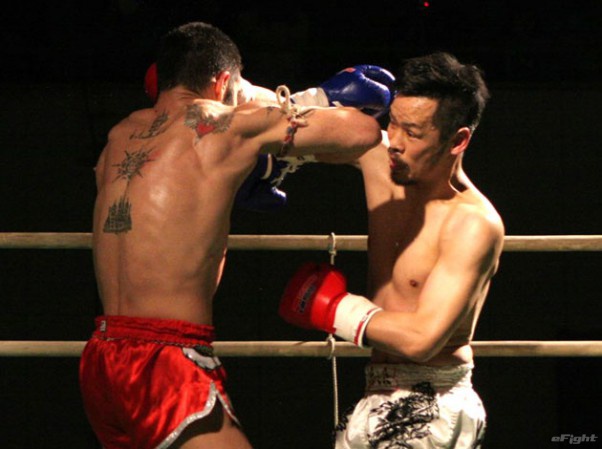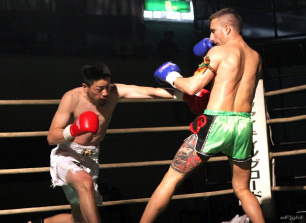 1Rから積極的に攻めた国崇(右)が2RでTKO勝ち