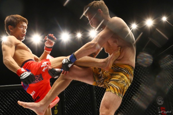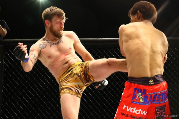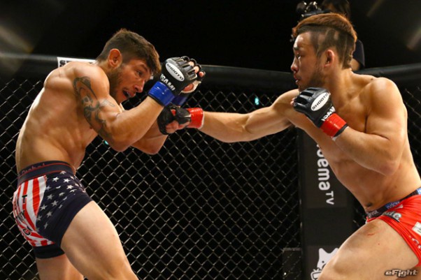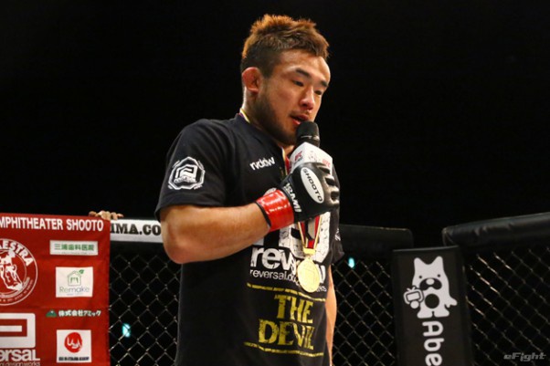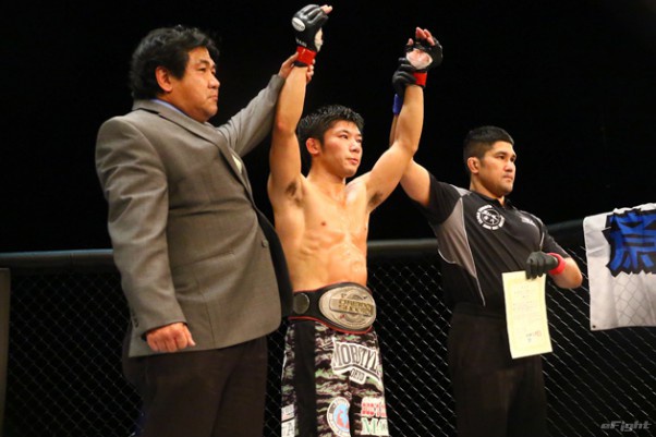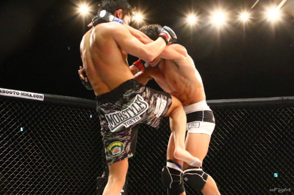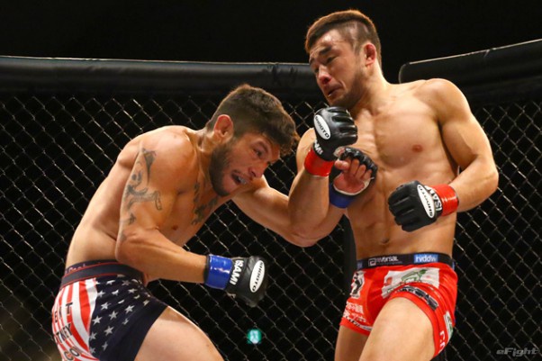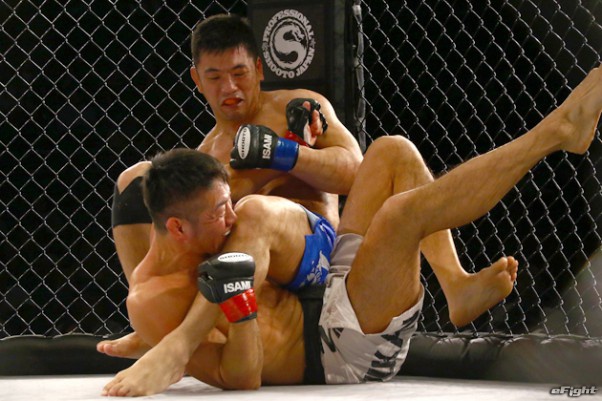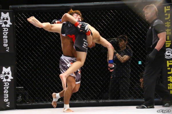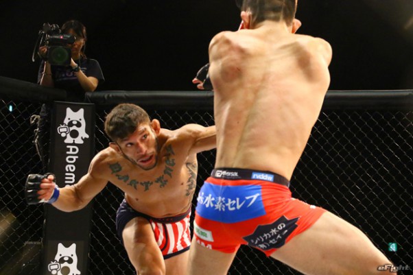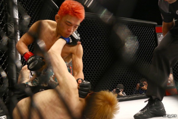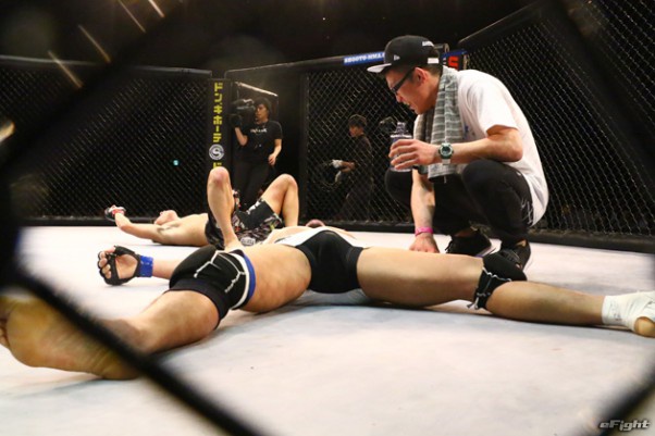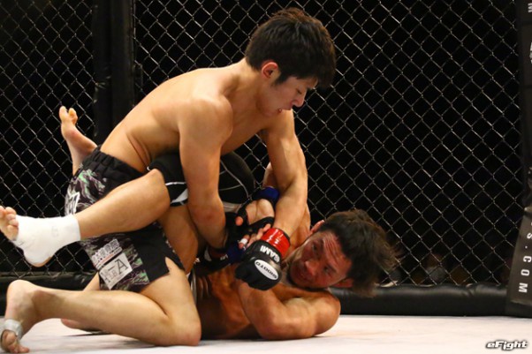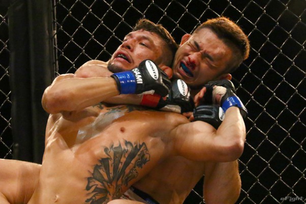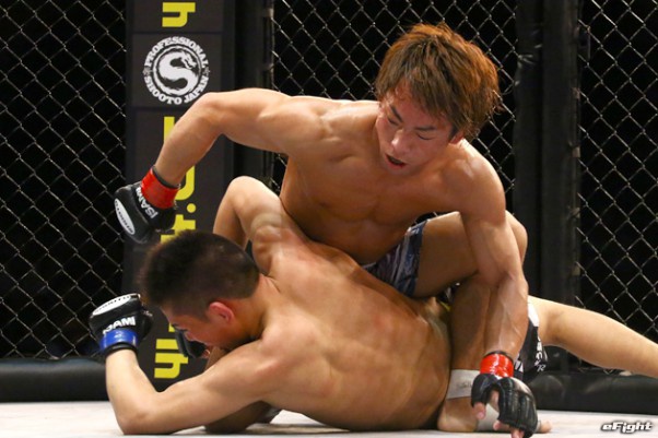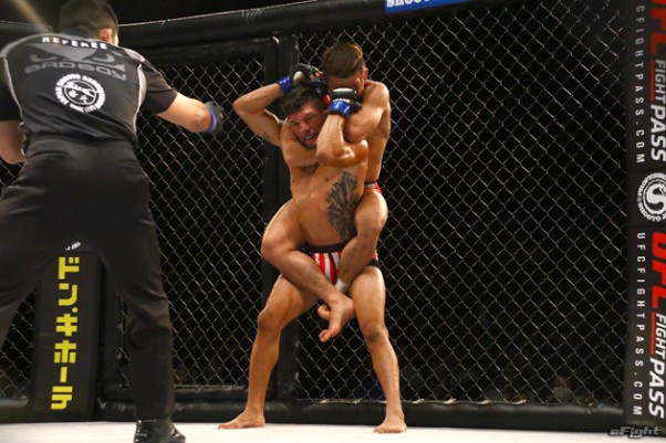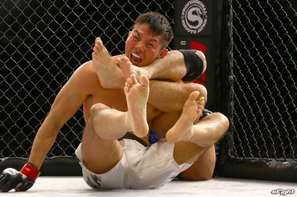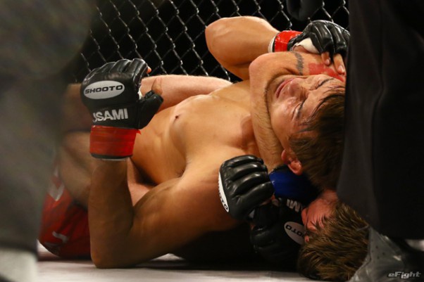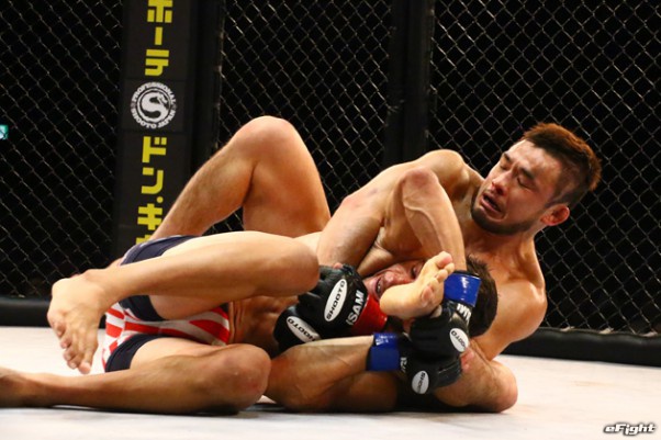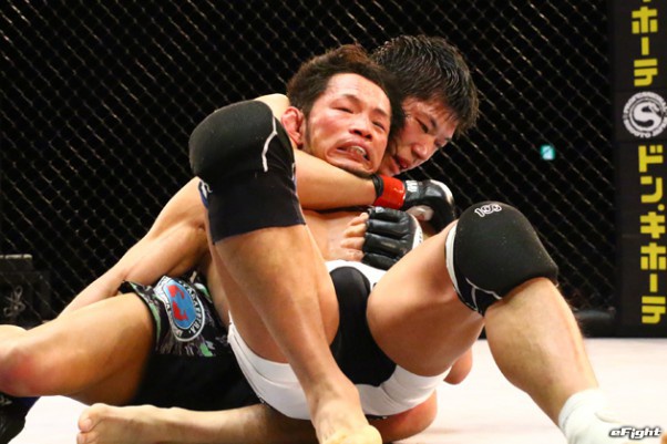 バックから渾身の力でマルティネスの首を絞め上げる扇久保