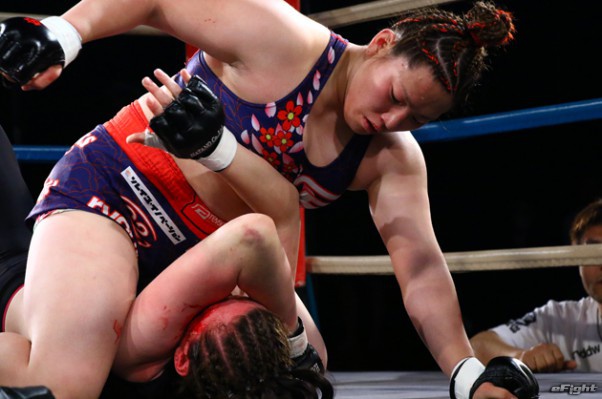 クリスティーン(下)をパウンド連打で下したKINGレイナ(上)