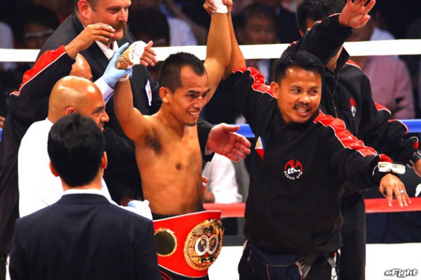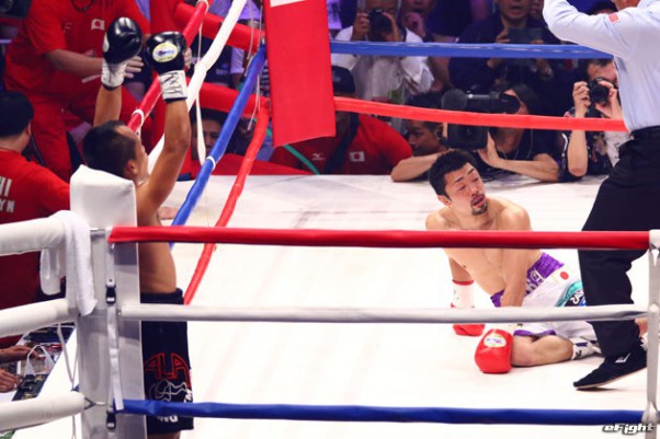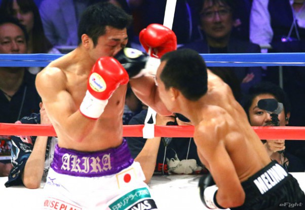 メリンド(右)の右ストレートが八重樫(左)の顔面を襲った