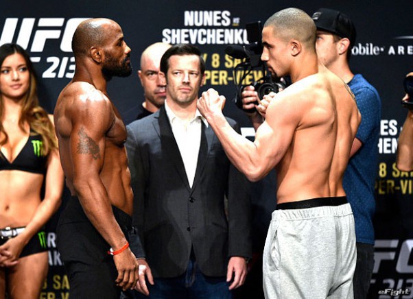 アリスター(左)のパンチがファブリシオ(右)を捉える。アリスターが決着戦を制した