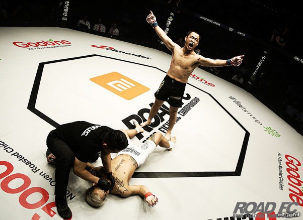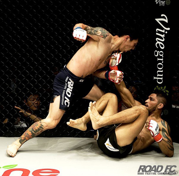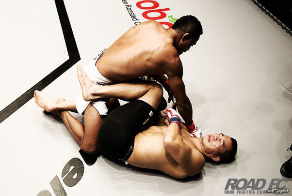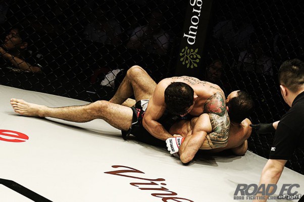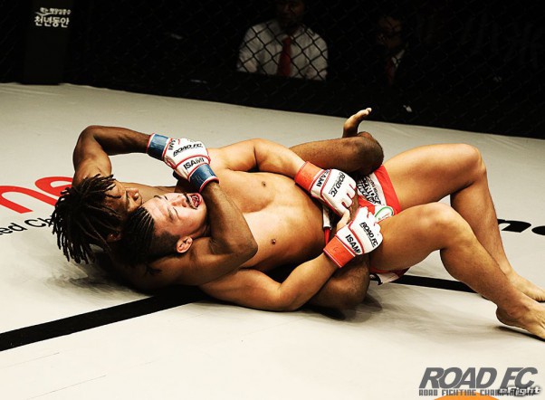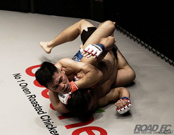 テイクダウンから相手のバックを取ってチョークを極めた下石