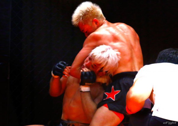 2度にわたってフロントチョークを仕掛けた窪田(右)が10連勝をマーク