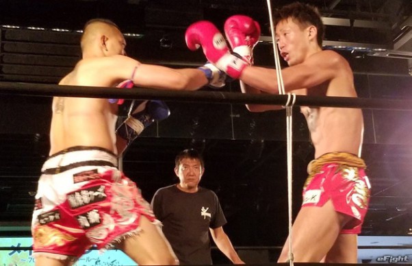 HOOST CUP EX日本ミドル級王者チューチャイ・ハーデスジム(左)と引き分けた井原(右)