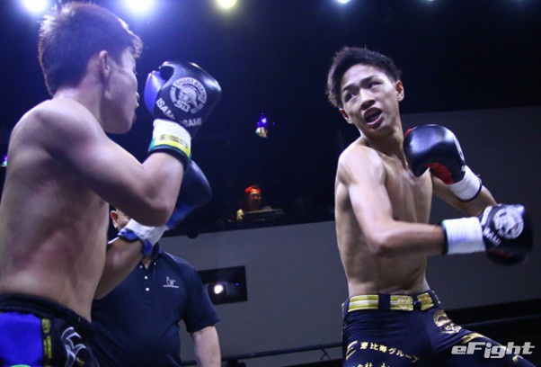 韓国の新鋭ソーフー(左)にKO勝ちした笠原(右)