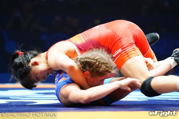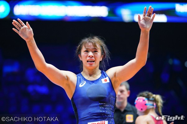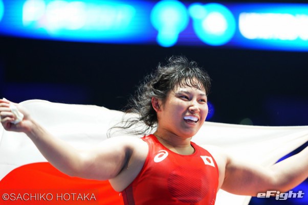 初優勝を果たし国旗を手に試合場を舞う土性沙羅