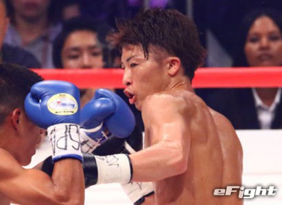 強烈な左ボディブローをニエベス(右)に何度も叩き込み、TKO勝利した井上尚弥(写真:日刊スポーツ/アフロ)