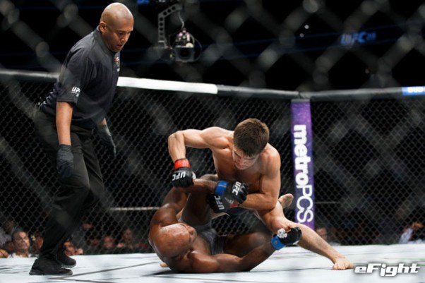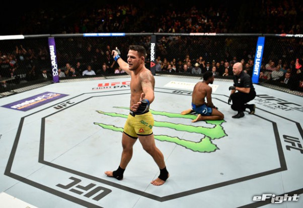お互いに手数が少なかった一戦は王者ヌネス(左)が終盤にテイクダウンを奪い、判定2-1で勝利