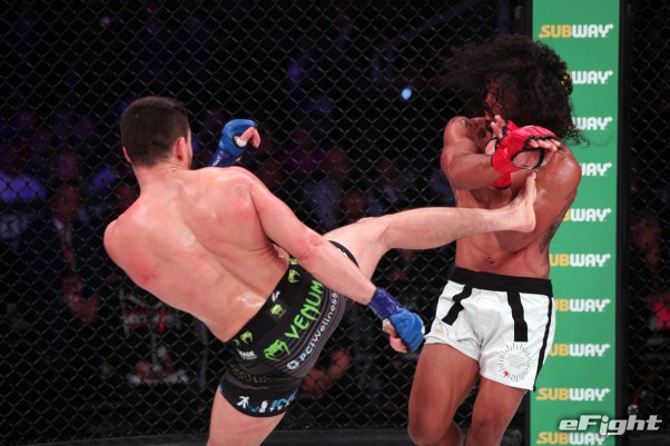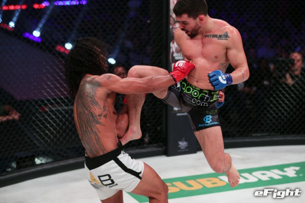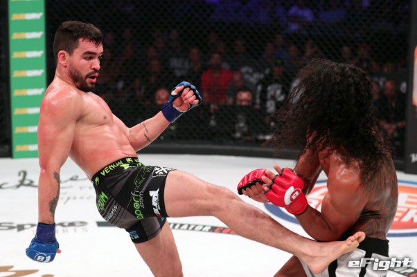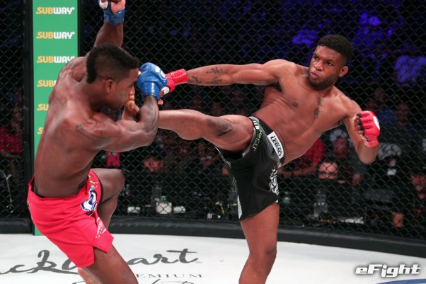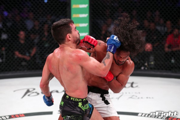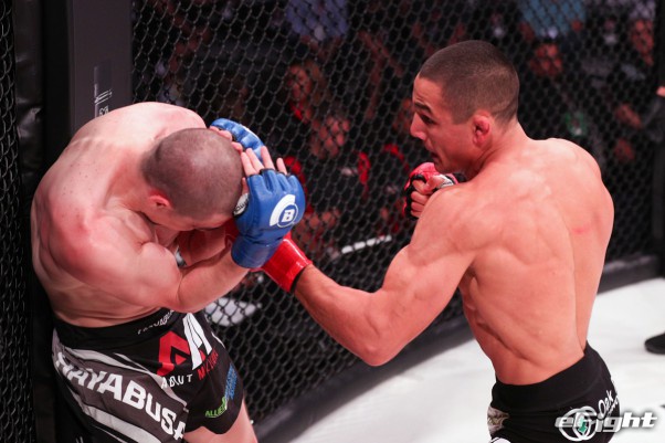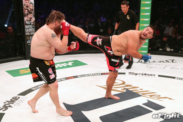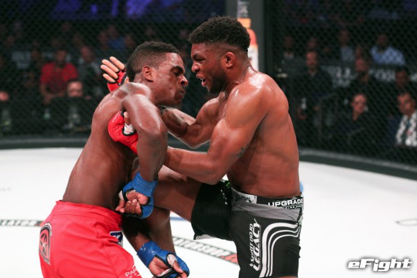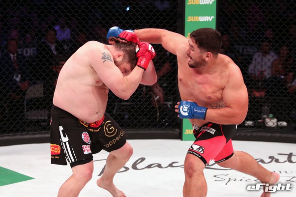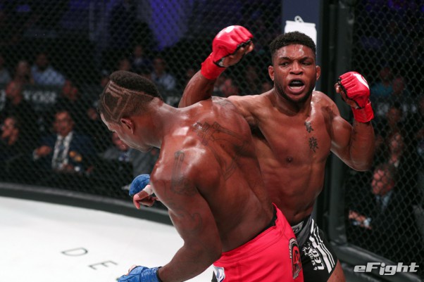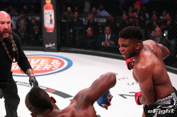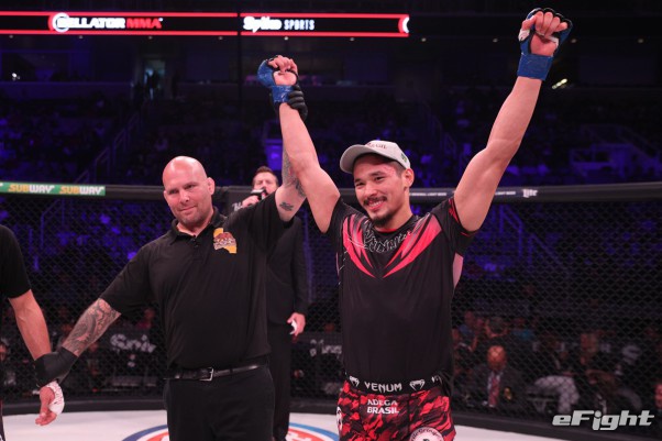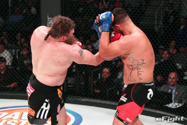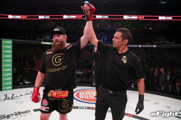 ベラトール初陣を勝利で飾り、大喜びの元UFCロイ・ネルソン(左)