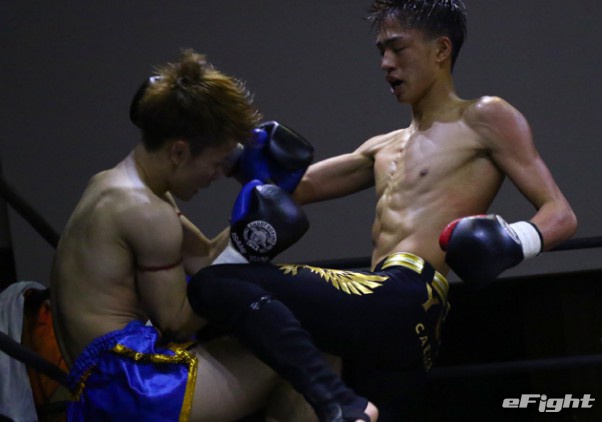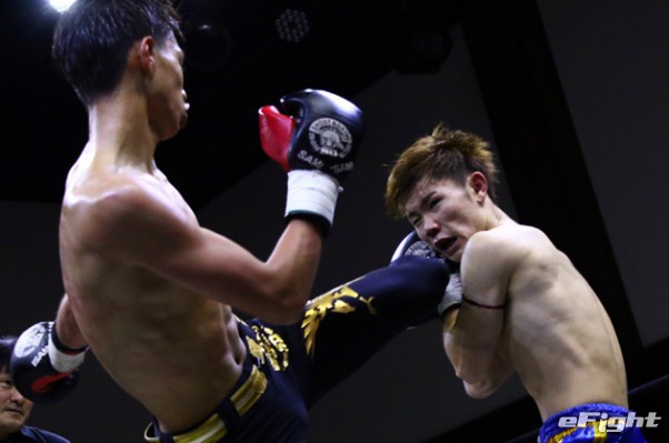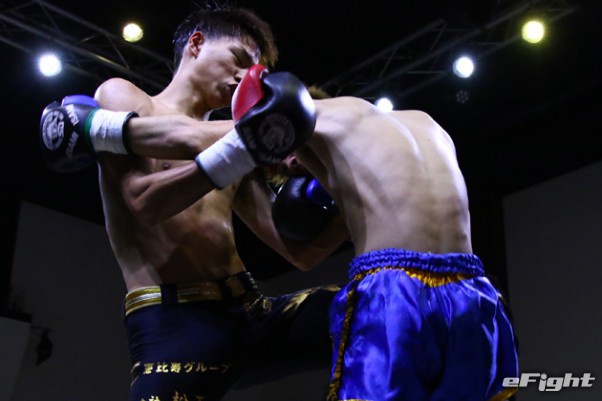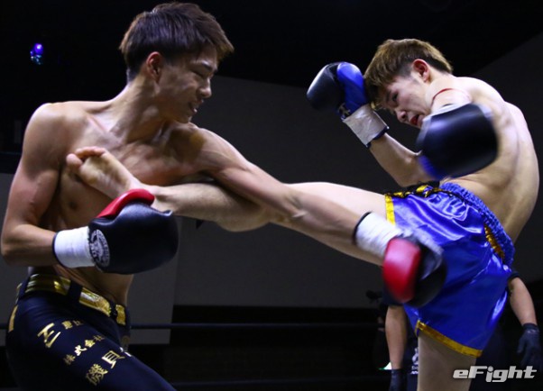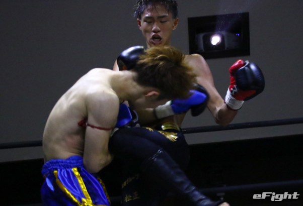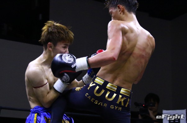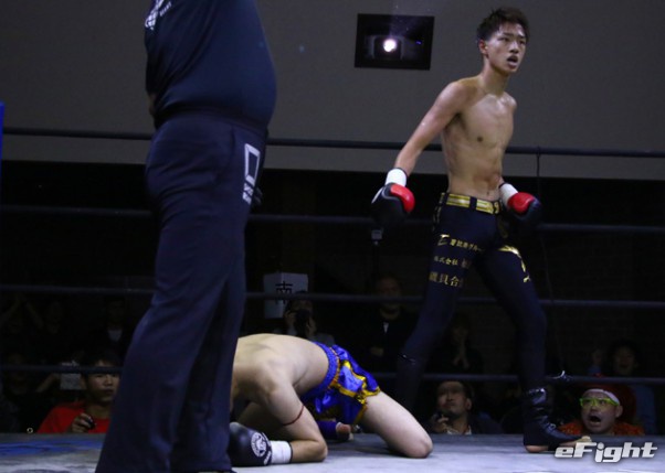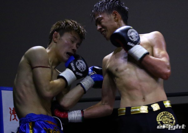 笠原(右)がテンカオで山田(左)からダウンを奪った
