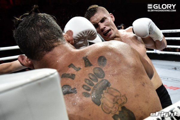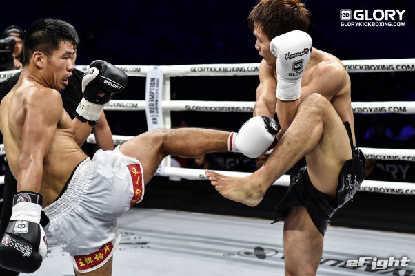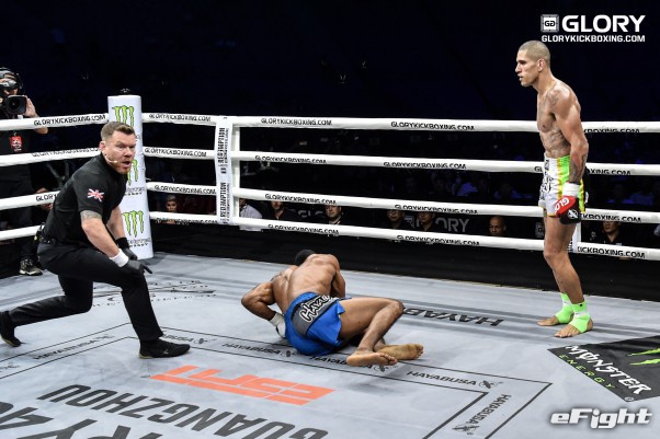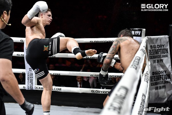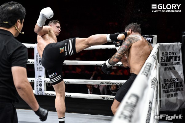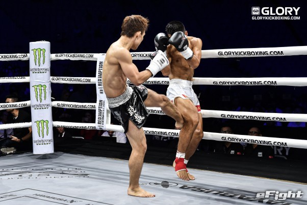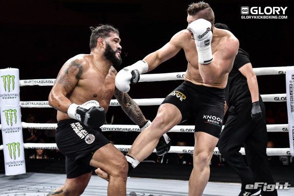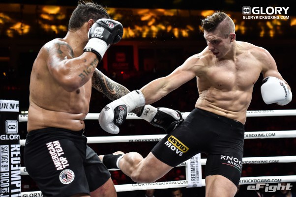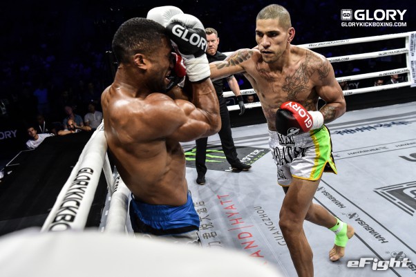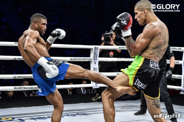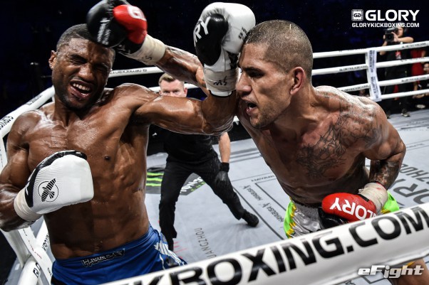 シウバ(右)をダウンさせた王者リコ(左)の右ハイ