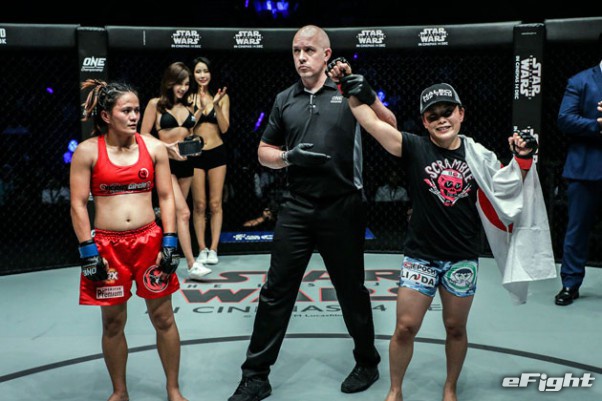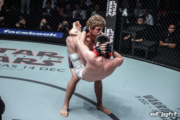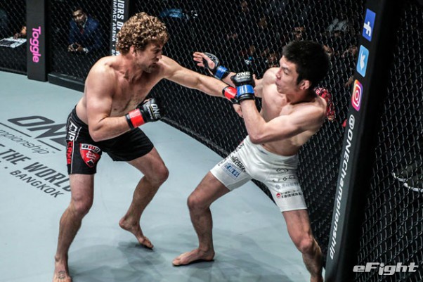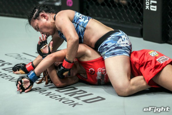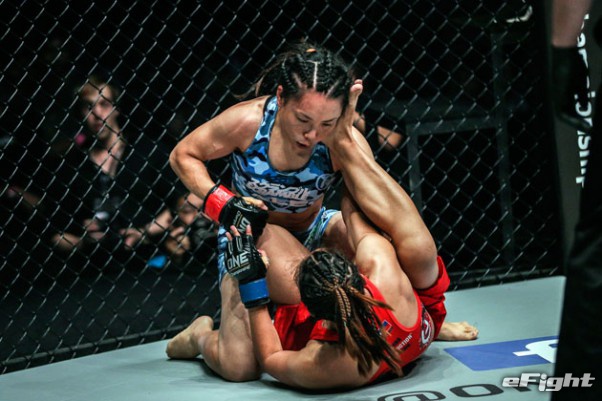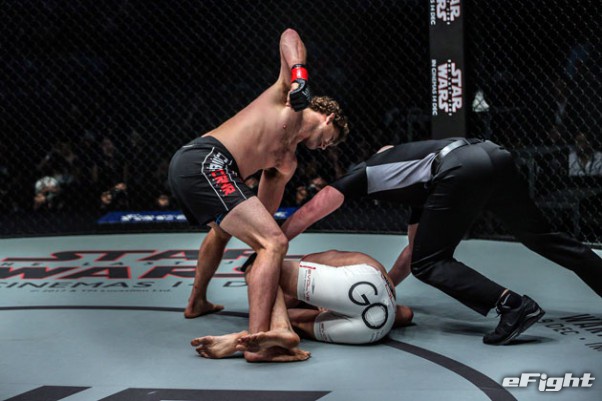 バックを奪ってイニオンの顔面にパンチを叩き込むV