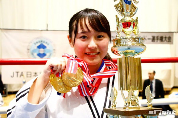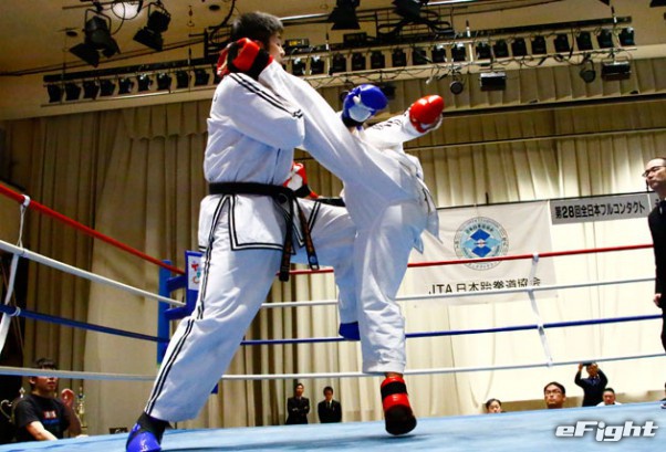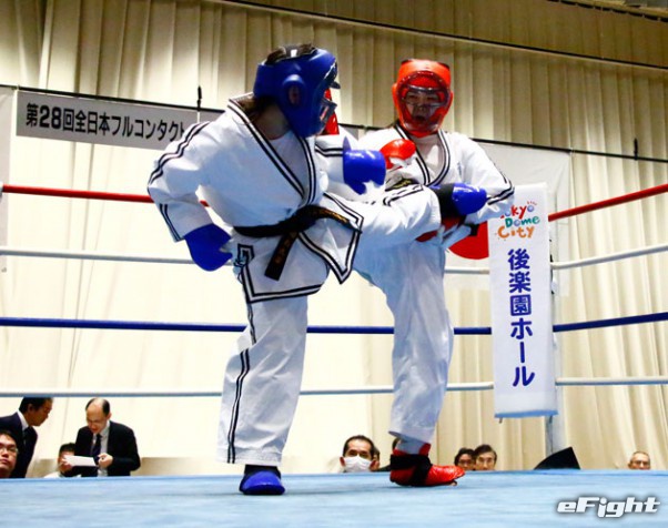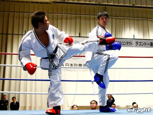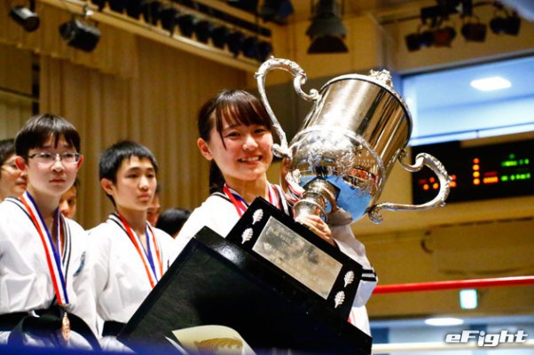 昨年に続いて団体型・個人型・組手と三部門を制した福島。組手は全日本では初のフルコンタクトルールでの優勝