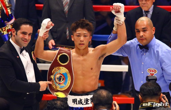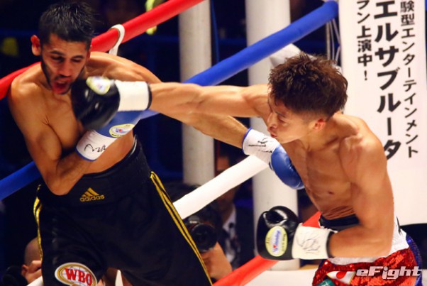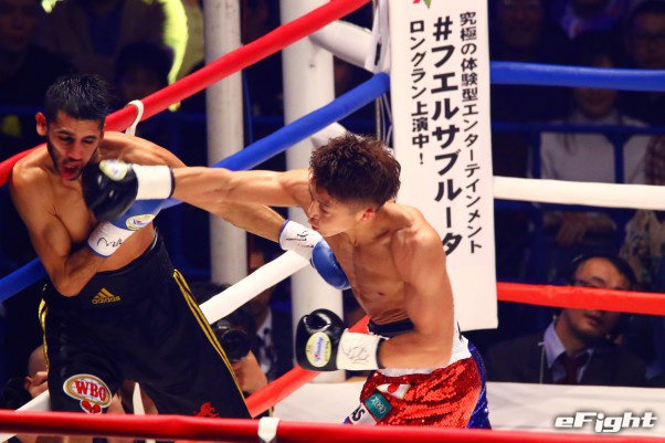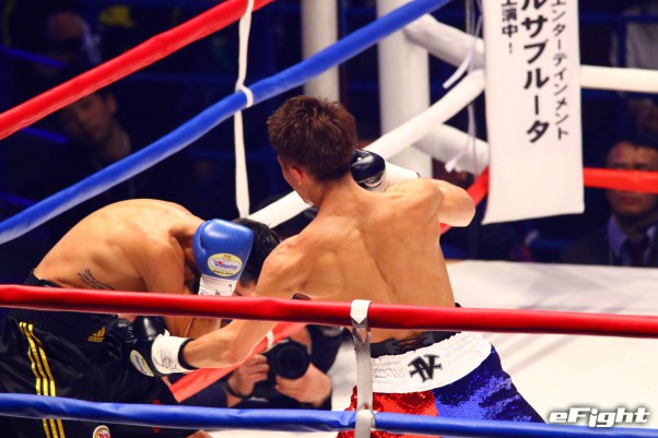 井上が左ボディで3度のダウンを奪いTKO勝利