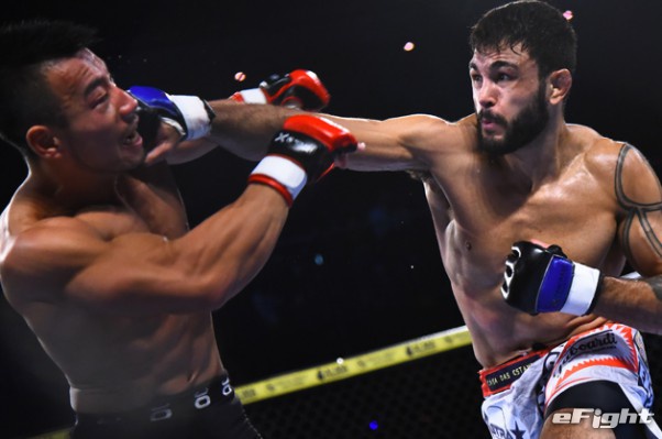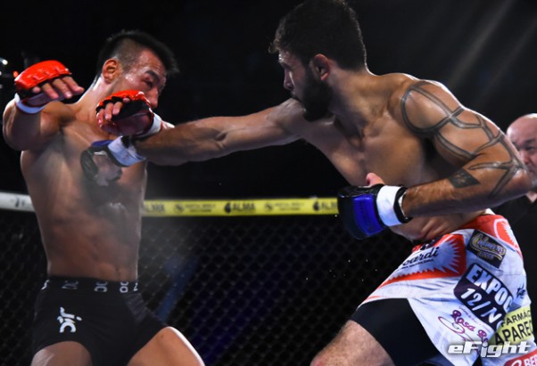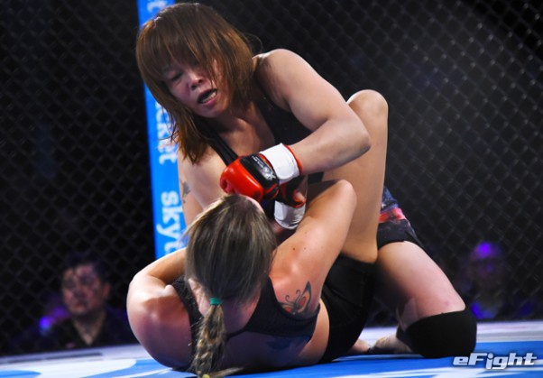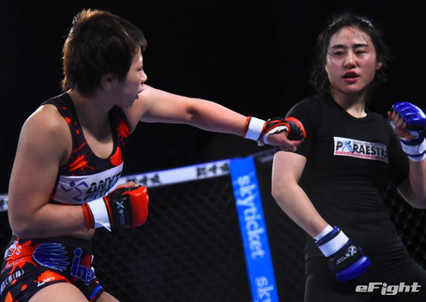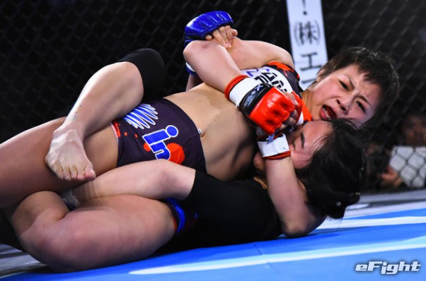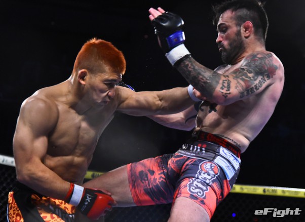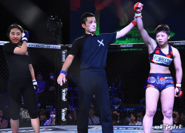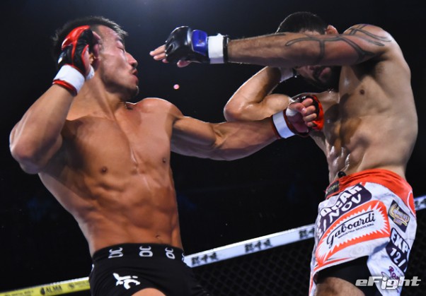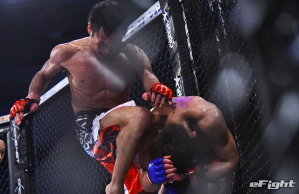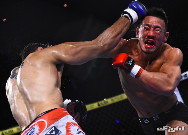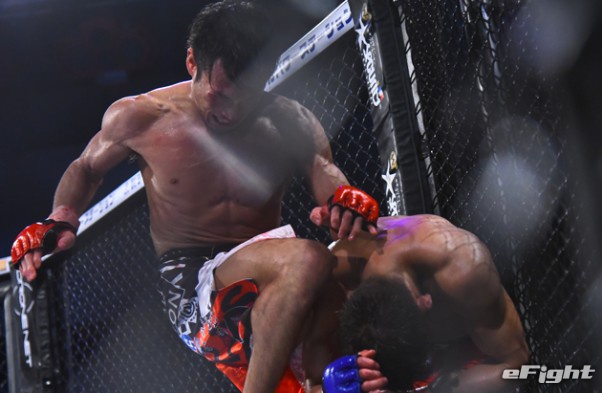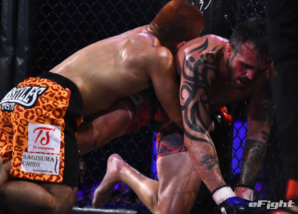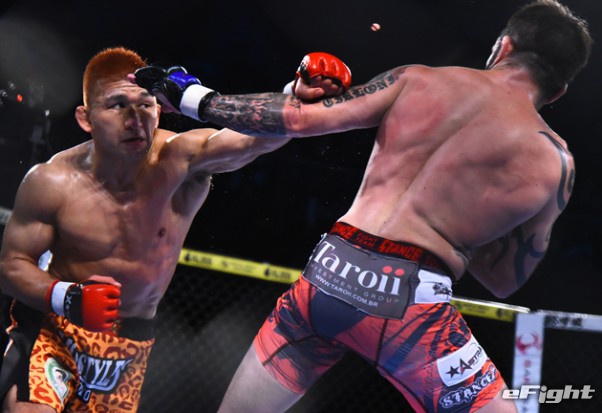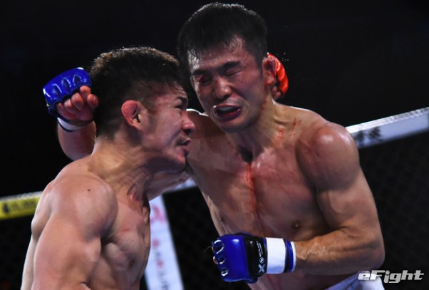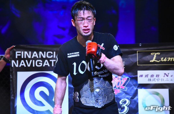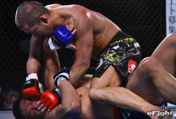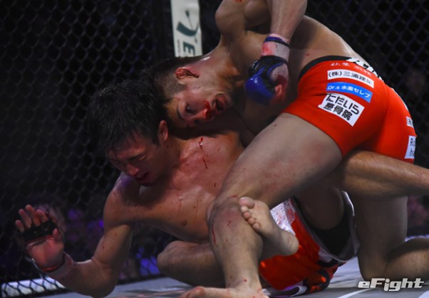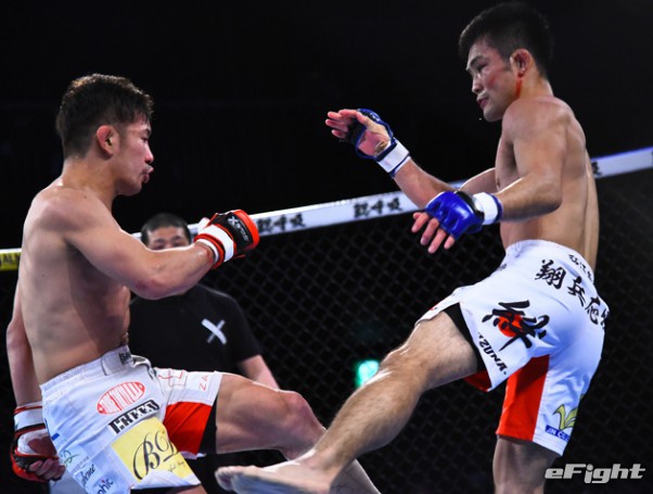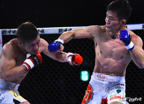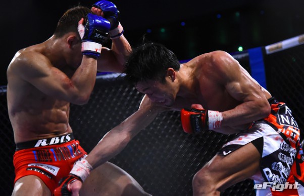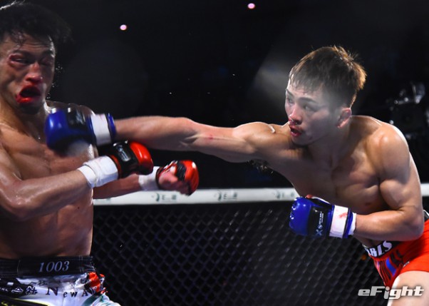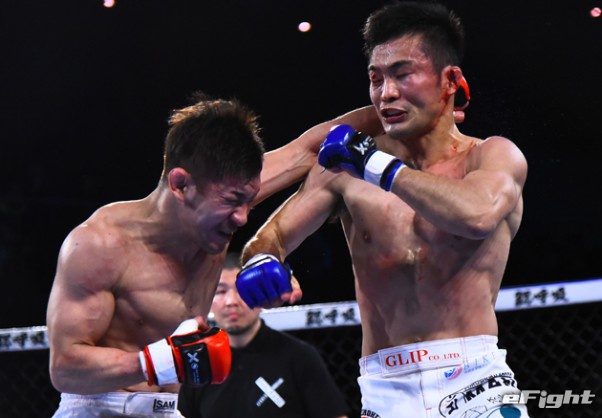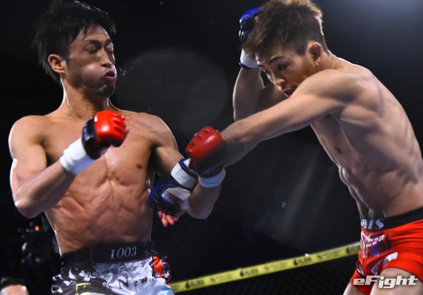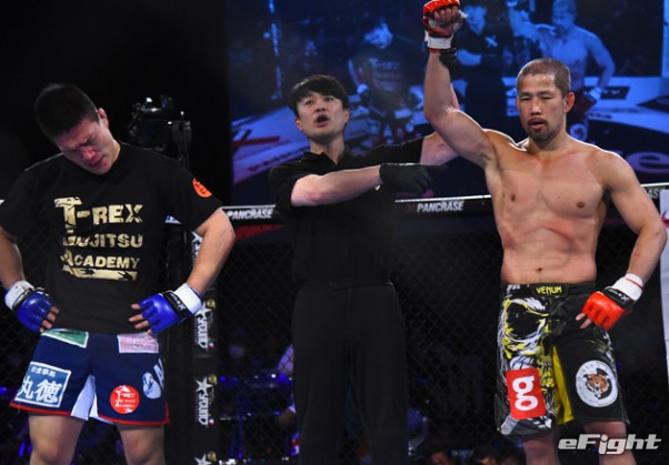 最後に若松(右)にヒザ蹴り連打で仕留めた仙三(左)