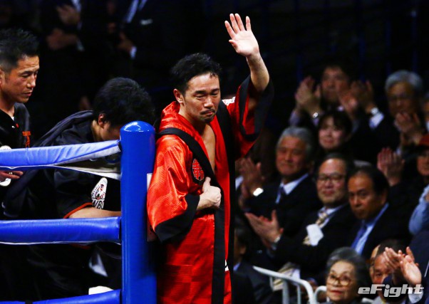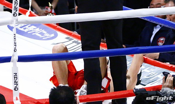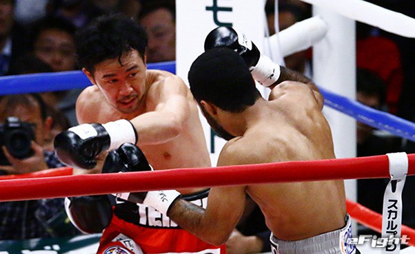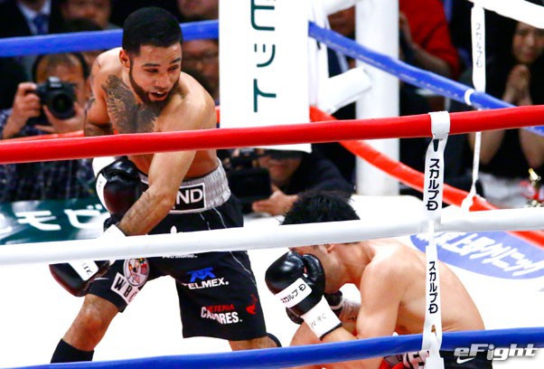 最後は右フックをもらって尻もちをついた山中、ネリは左をフォロー