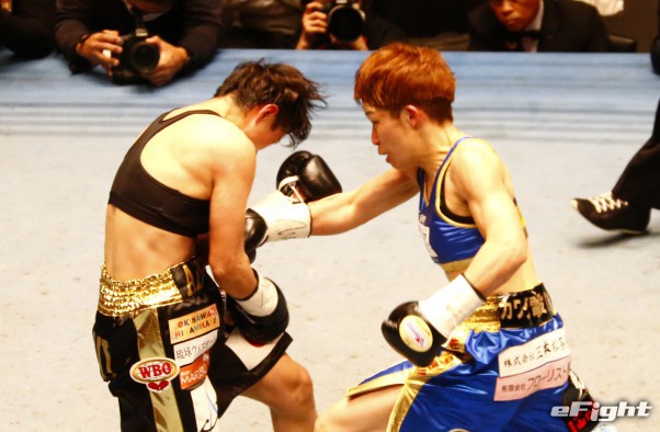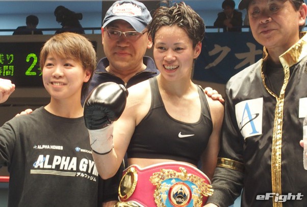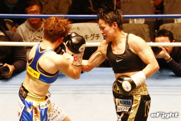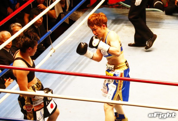天海ツナミ(右)がTKOでチャオズ箕輪に勝利。二階級制覇を果たす