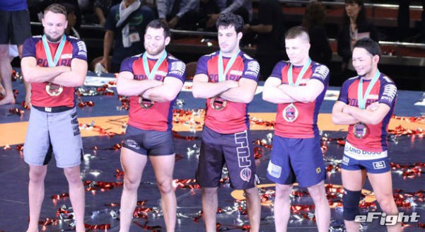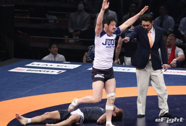 秒殺一本勝ちをした所はチームメイトに駆け寄る