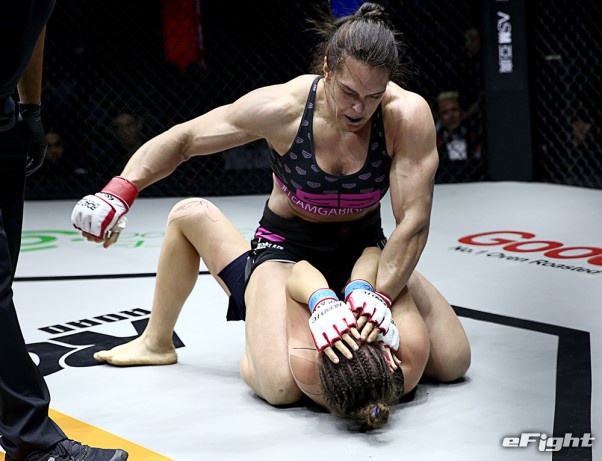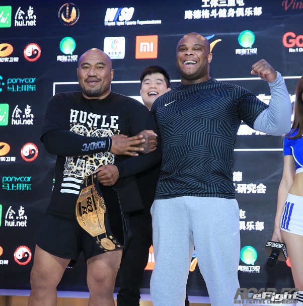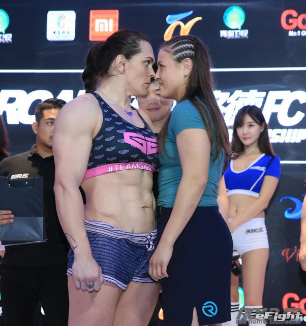 前日計量でにらみ合うギャビ(左)とフティな(右)