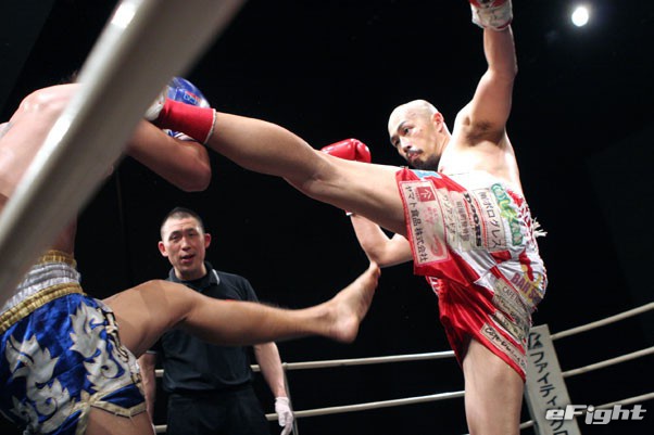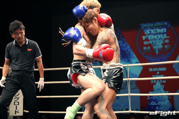 メインでムエタイのラクレ―(左)と対戦した宮島(右)だが、ドローに終わった