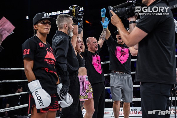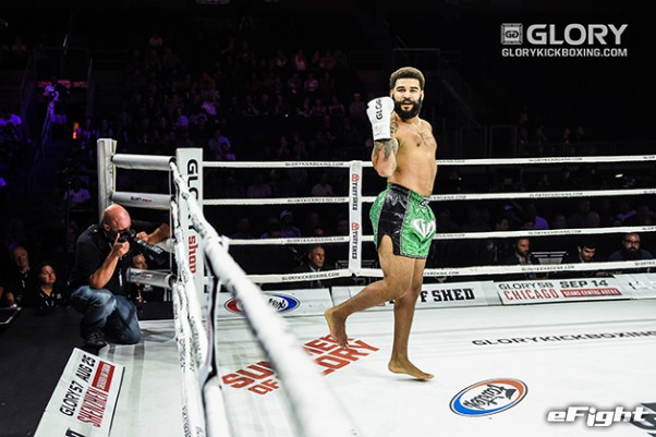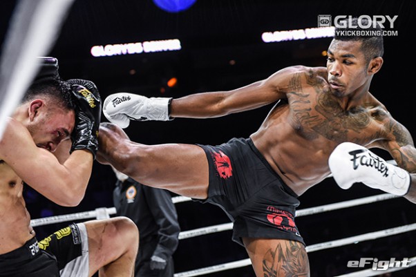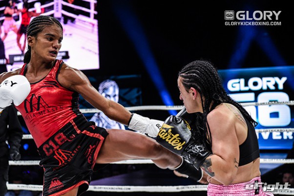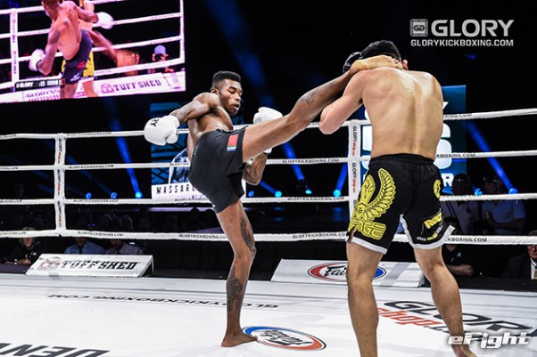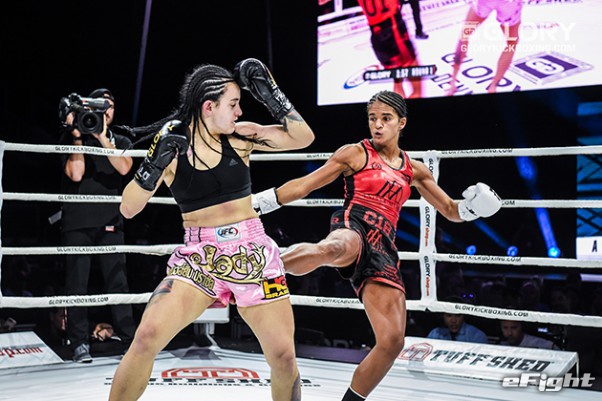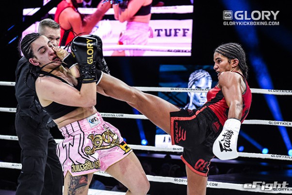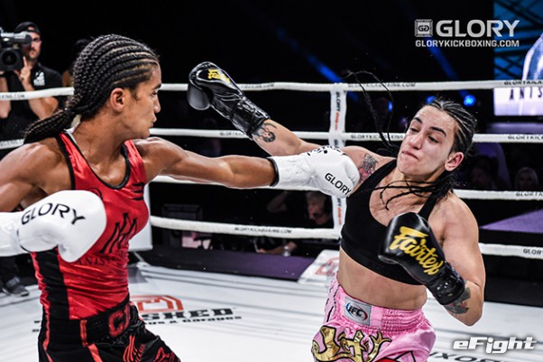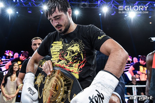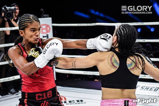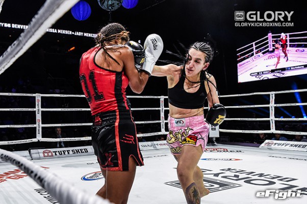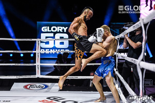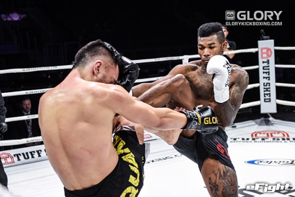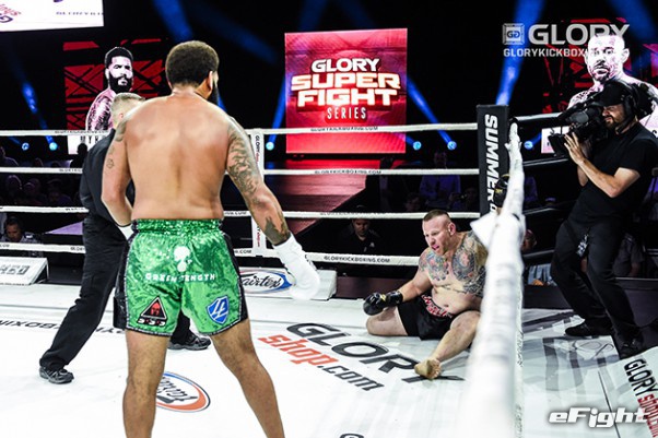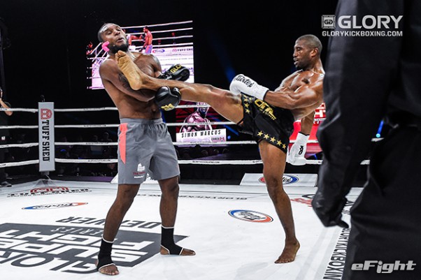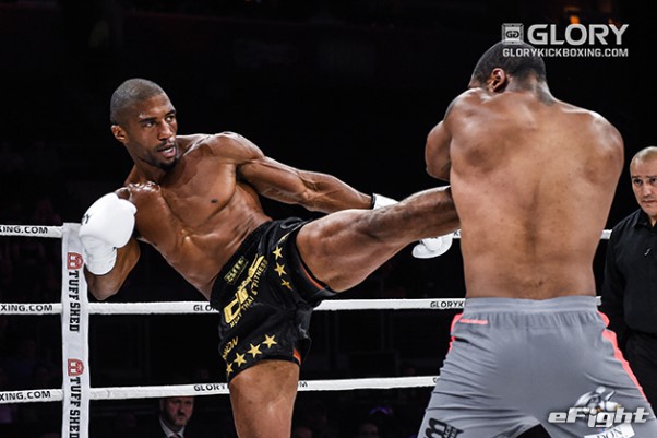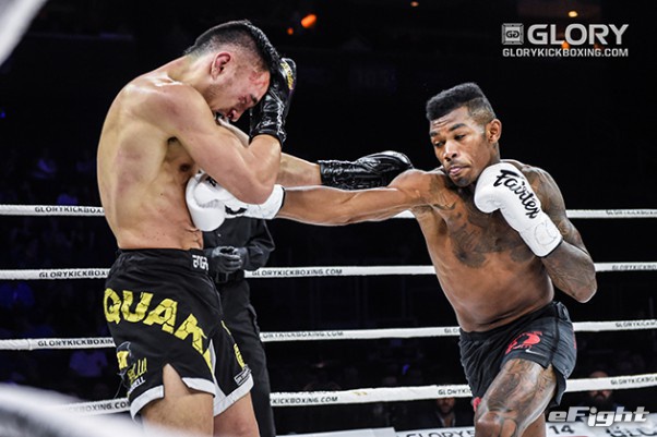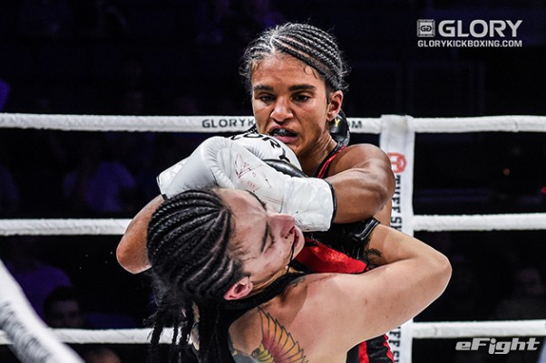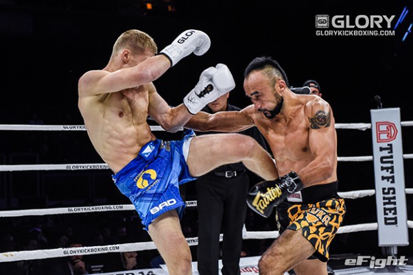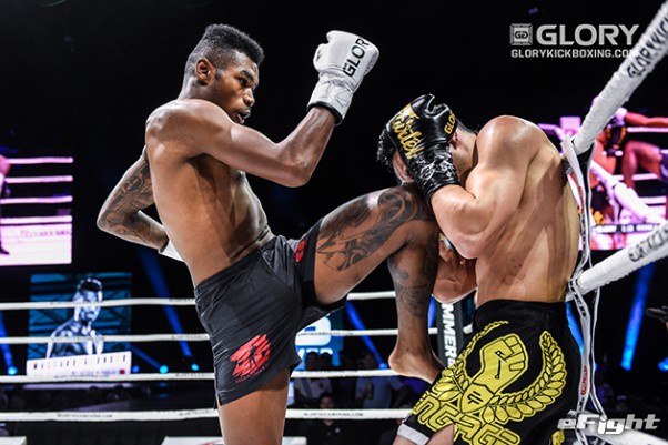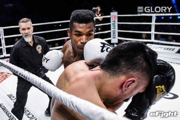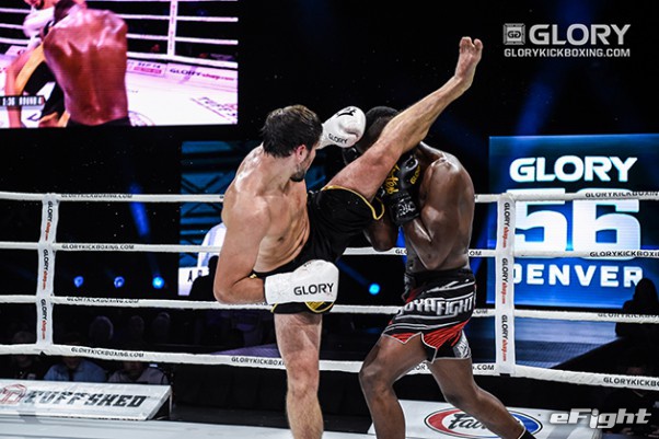 イルンガ(右)にパンチを押し込まれるヴァキトフ(左)