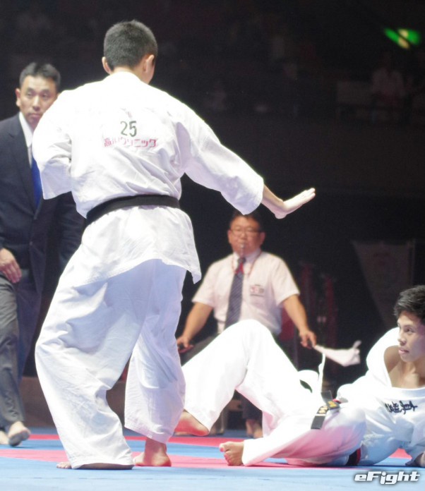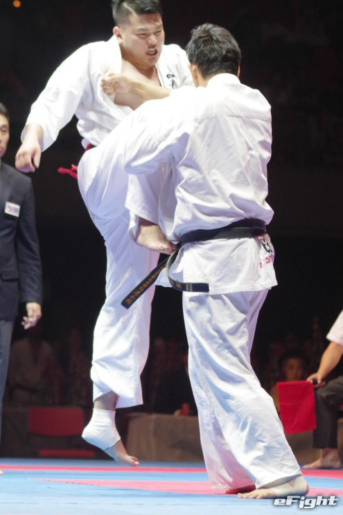 小野寺は蹴り足をキャッチされると、逆側の足でジャンピングキックし会場を沸かす