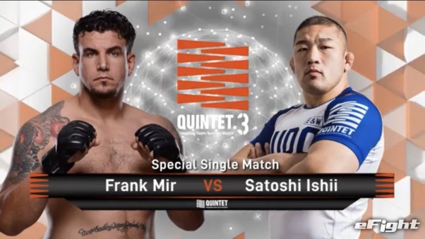 石井(右)はフランク・ミアを相手に有利なポジションを取り続け、相手の消極的姿勢を誘って勝利