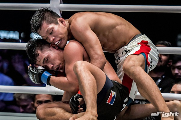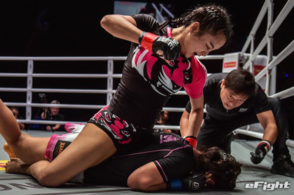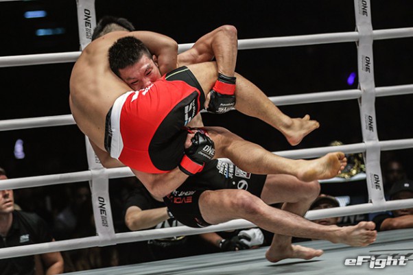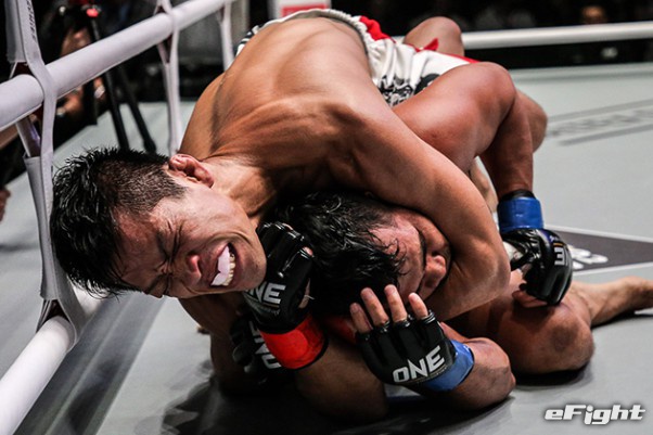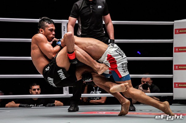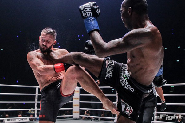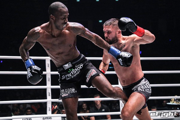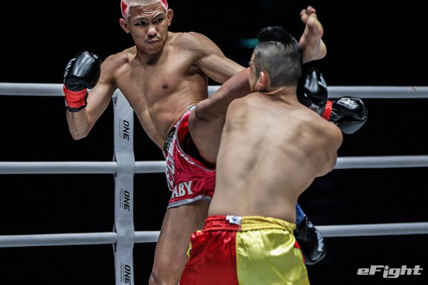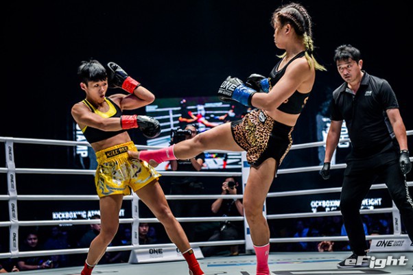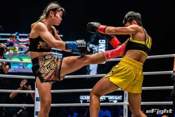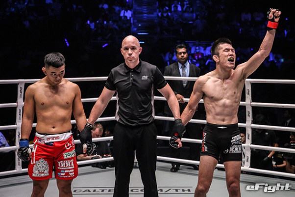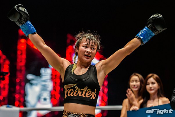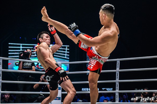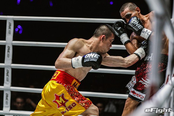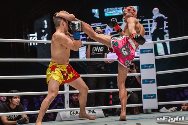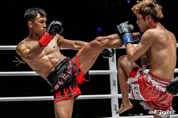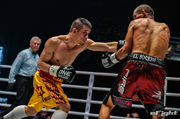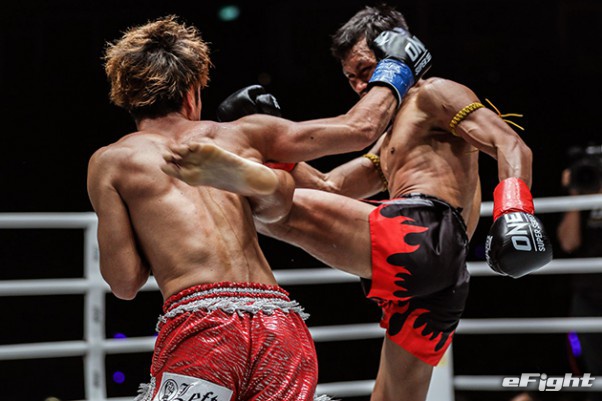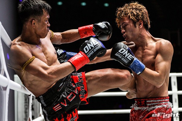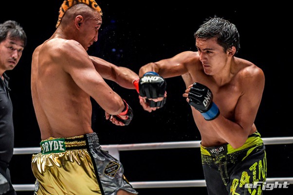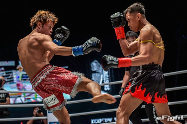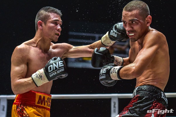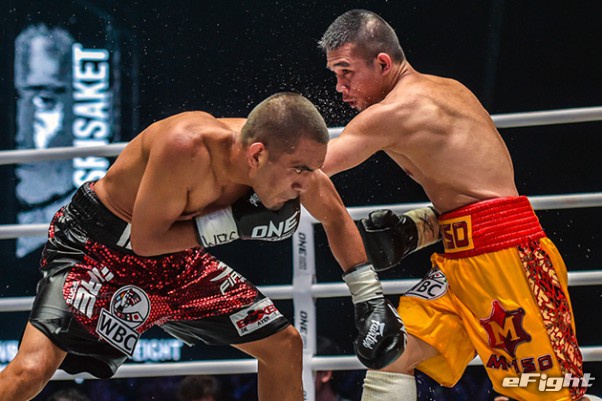MMA団体のリングで実現したボクシング世界戦。王者シーサケット(左)が粘るディアス(右)の挑戦を退けた