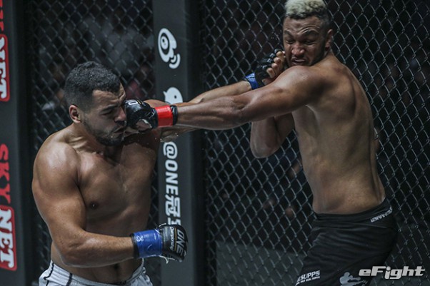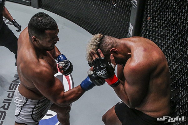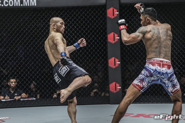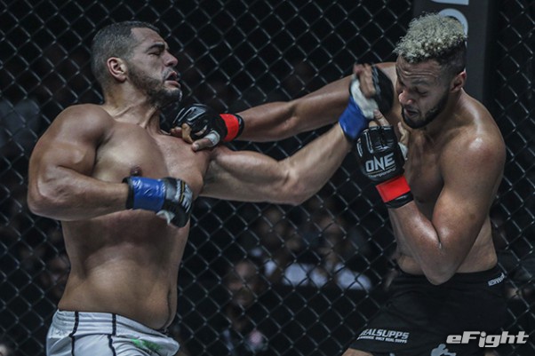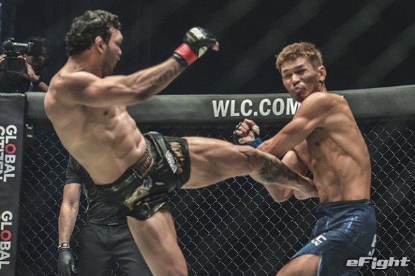 ルイス(左)の強烈な左ミドルを被弾する阿部(右)