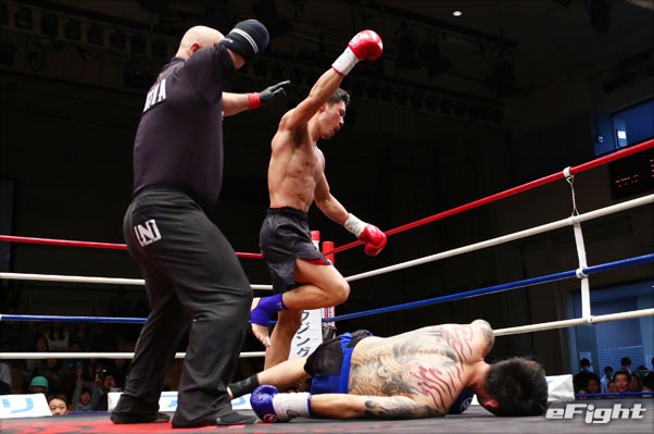 吉野はダウンを奪われながらも今井をなぎ倒し、剛腕ぶりを発揮してKO勝ちデビュー