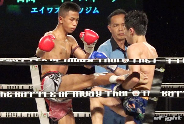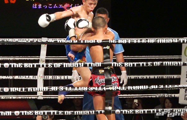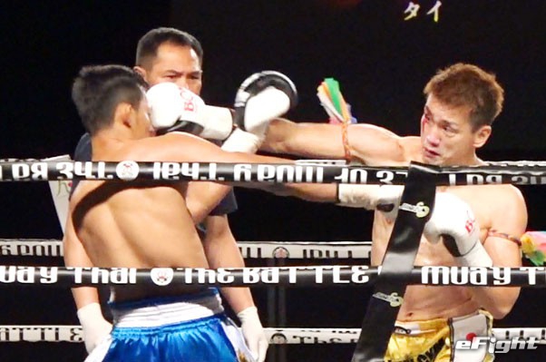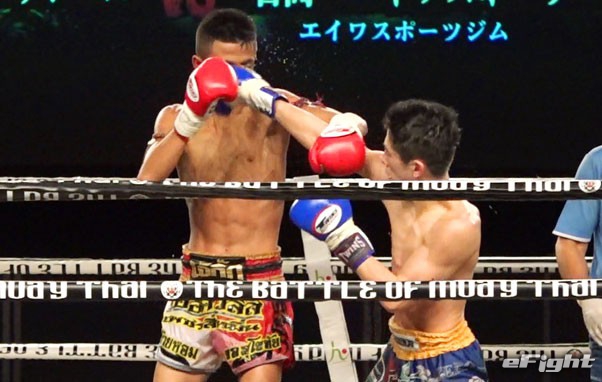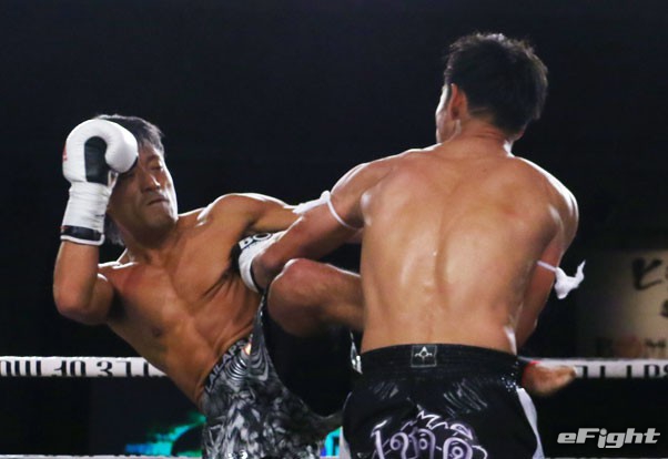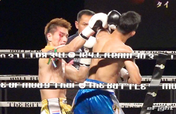 ガオナーがヒジでカットし、NOBUを流血に追い込んだ
