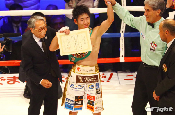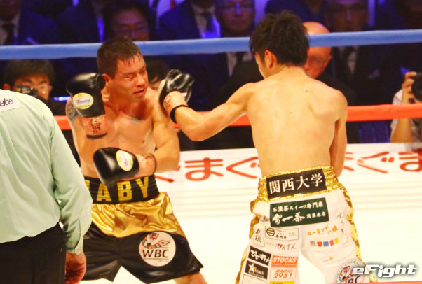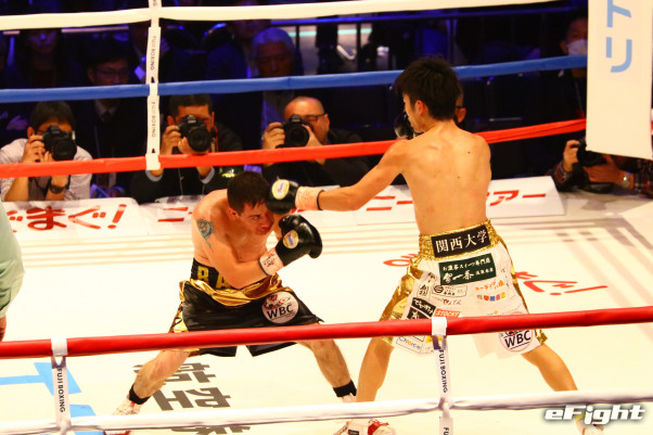 最終ラウンドでボディを打ち込む拳四朗