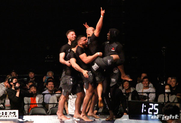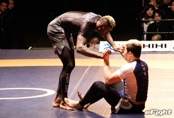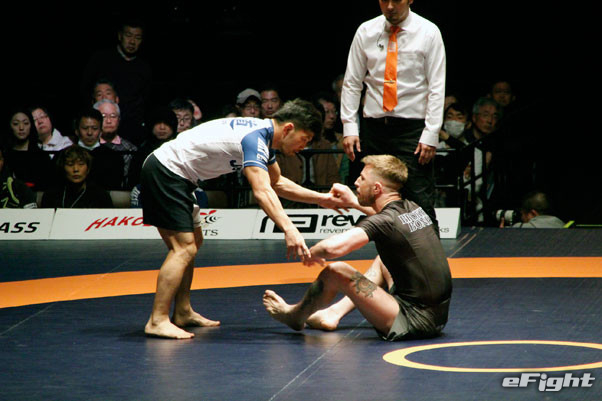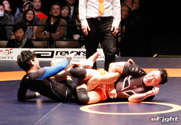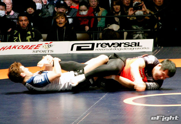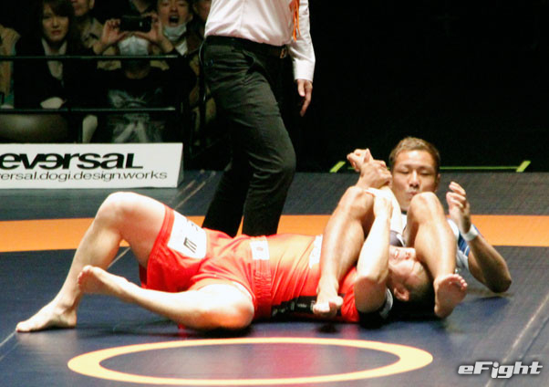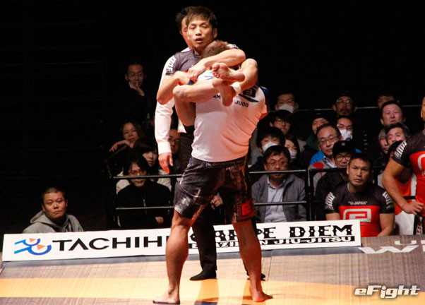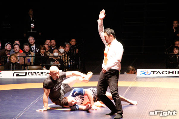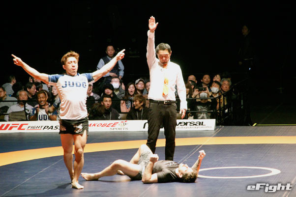 2試合目も首を極めるネッククランクで山田が一本勝ち