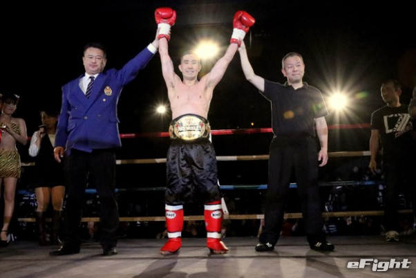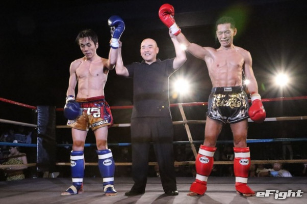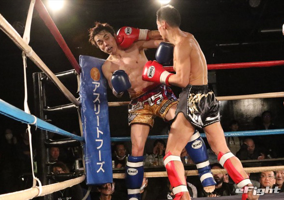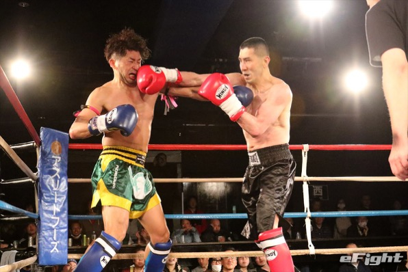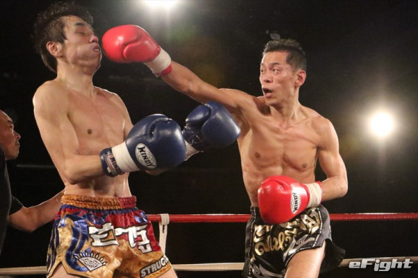 川辺(右)の右ストレートが越田(左)の顔面を捉える