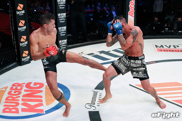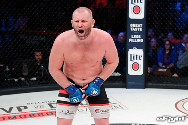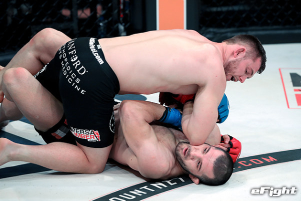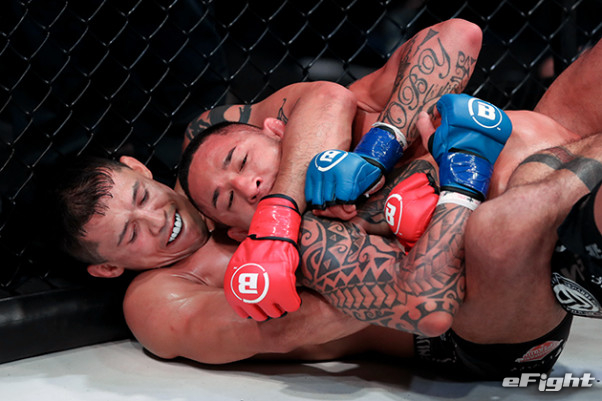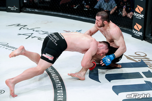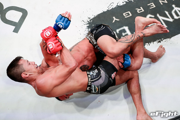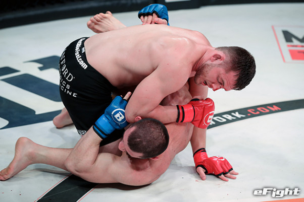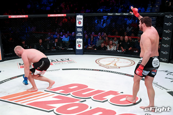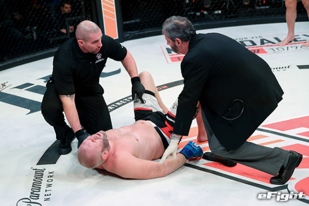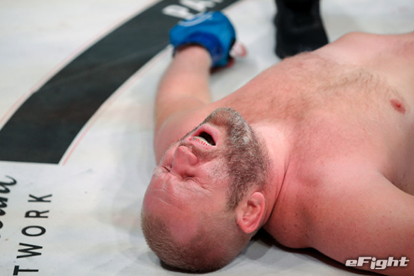 苦悶の表情で倒れ込んだハリトーノフ Photo by Bellator