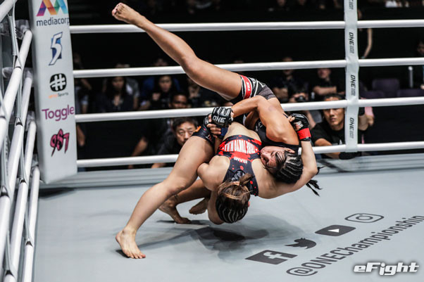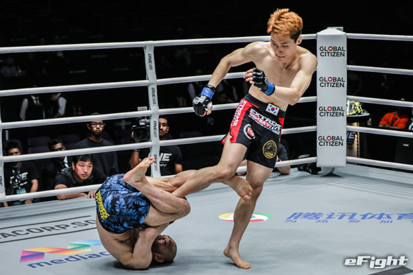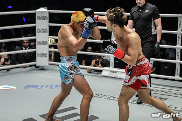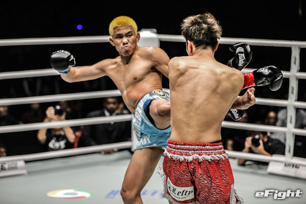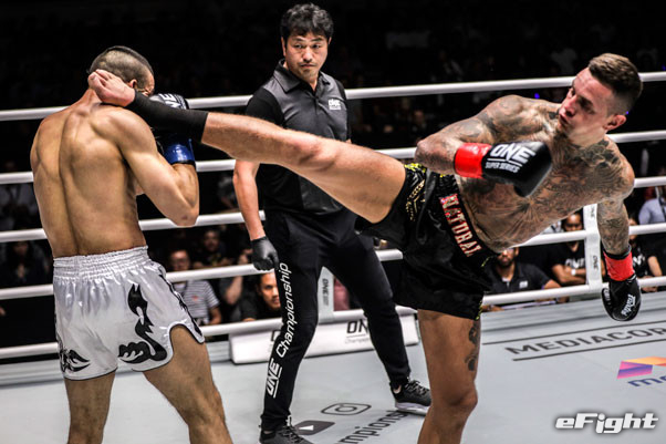 ホルツケン(右)の後ろ回し蹴り。カカトがヒットした