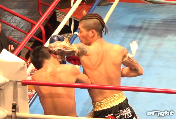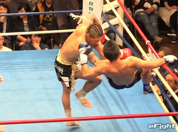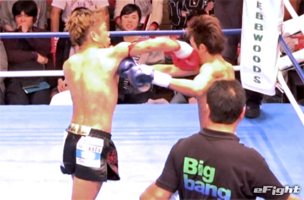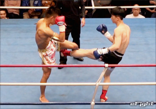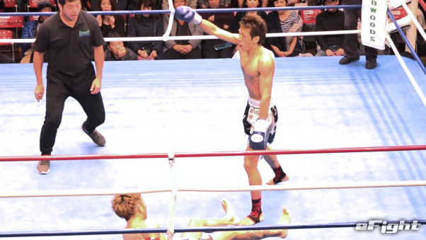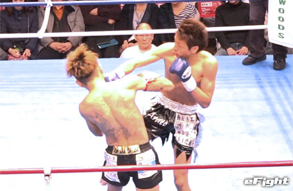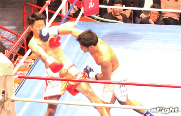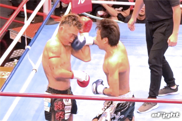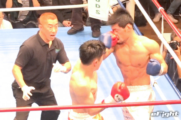 ダウンの応酬だったが、2度のダウンを奪った新人(右)が判定勝利