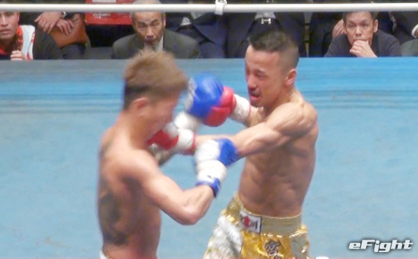 左ストレートでカウンターの餌食にする宮崎