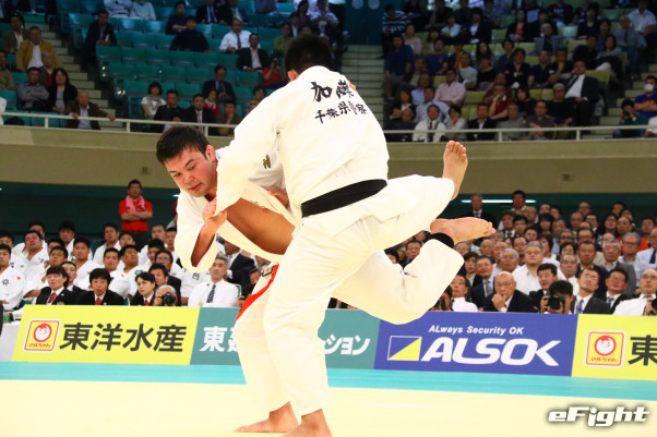 決勝で対戦した2人は2年前の全日本準決勝でも対戦しウルフ(右)が後半攻めて勝利=写真は2017年の準決勝
