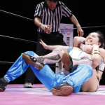 裸絞めを仕掛ける白川。ここから三角絞めに移った