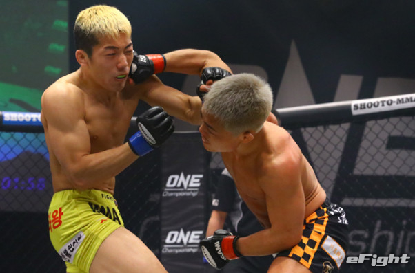 ジョンミン(左)をKOした齋藤の右フック